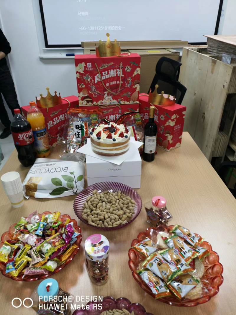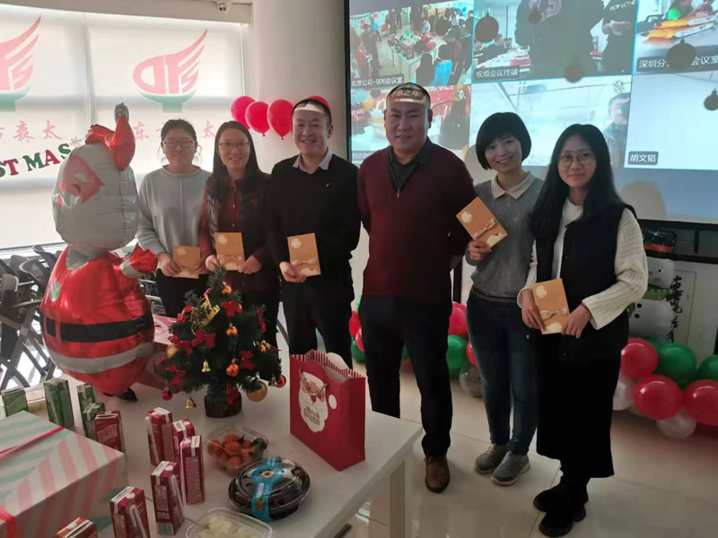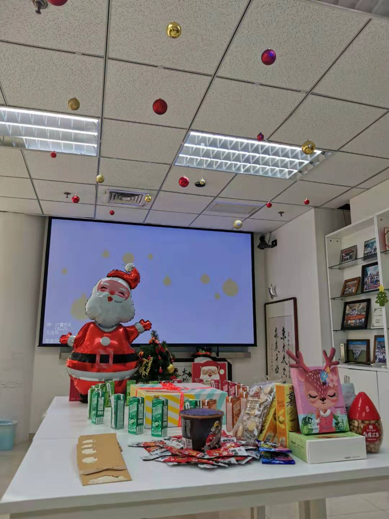 好的礼物总能让节日的喜悦成倍放大,员工们的干劲也因为惊喜更为充足,但圣诞礼物只是2019圣诞节的序幕。下午三点,圣诞、生日双重聚会正式开始,合肥、西安、深圳等分公司员工也通过视频连接的形式同步分享欢乐。