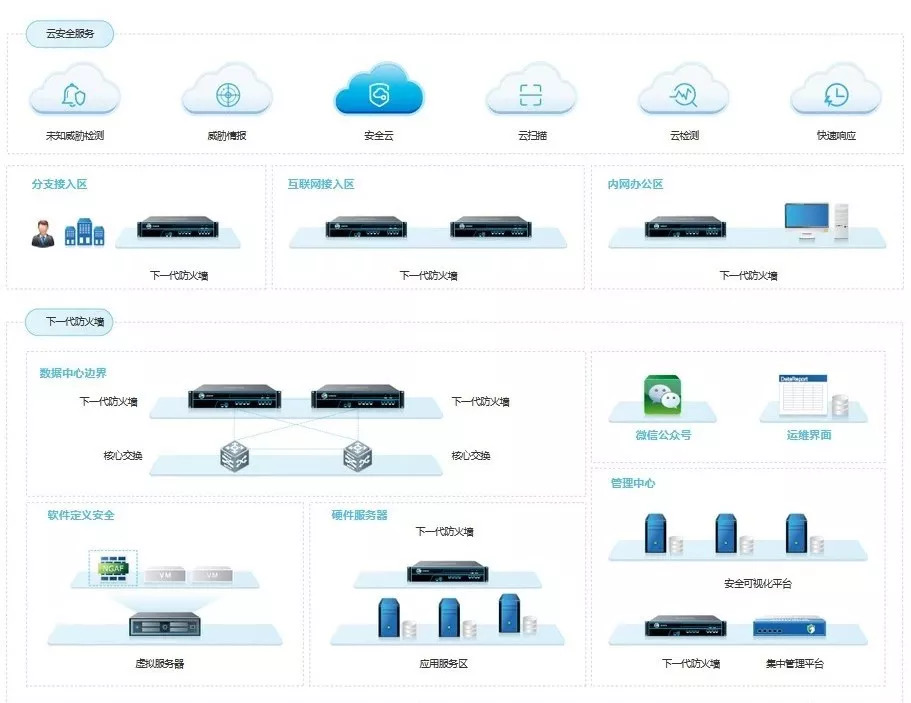 该方案不仅可以提升广域网的安全防护能力,还能够帮助用户实时了解分支机构安全风险,避免分支机构存在安全建设薄弱点从而成为入侵短板,以便真正实现管理集中化和运维自动化。