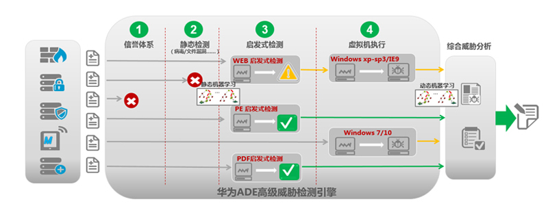 华为FireHunter6000系列沙箱产品凭借独有的ADE高级威胁检测引擎,与下一代防火墙配合,面对高级恶意软件,通过信誉扫描、实时行为分析等本地和云端技术,分析和收集软件的静态及动态行为,对“灰度”流量实时检测、阻断和报告呈现,有效避免未知威胁攻击的迅速扩散和企业核心信息资产损失,特别适用于金融、政府机要部门、能源、高科技等关键用户。
